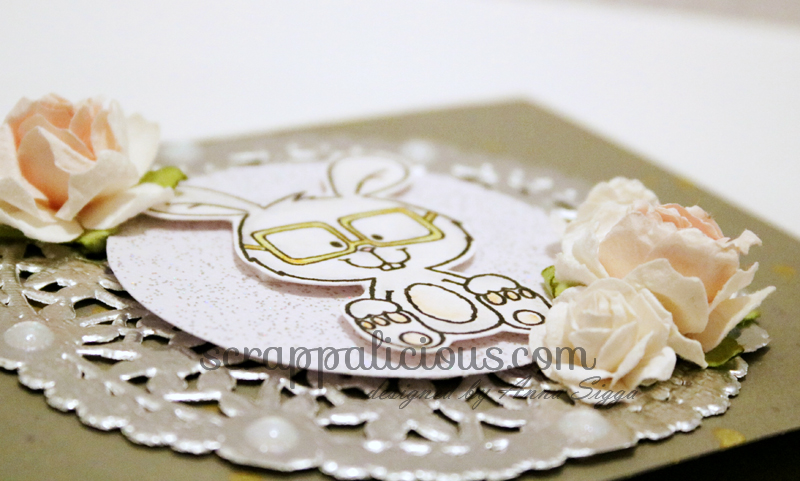 I have another card using the adorable Nerdy Easter Bunny stamp set by Gerda Steiner and this time I decided to add lots of silver and flowers!